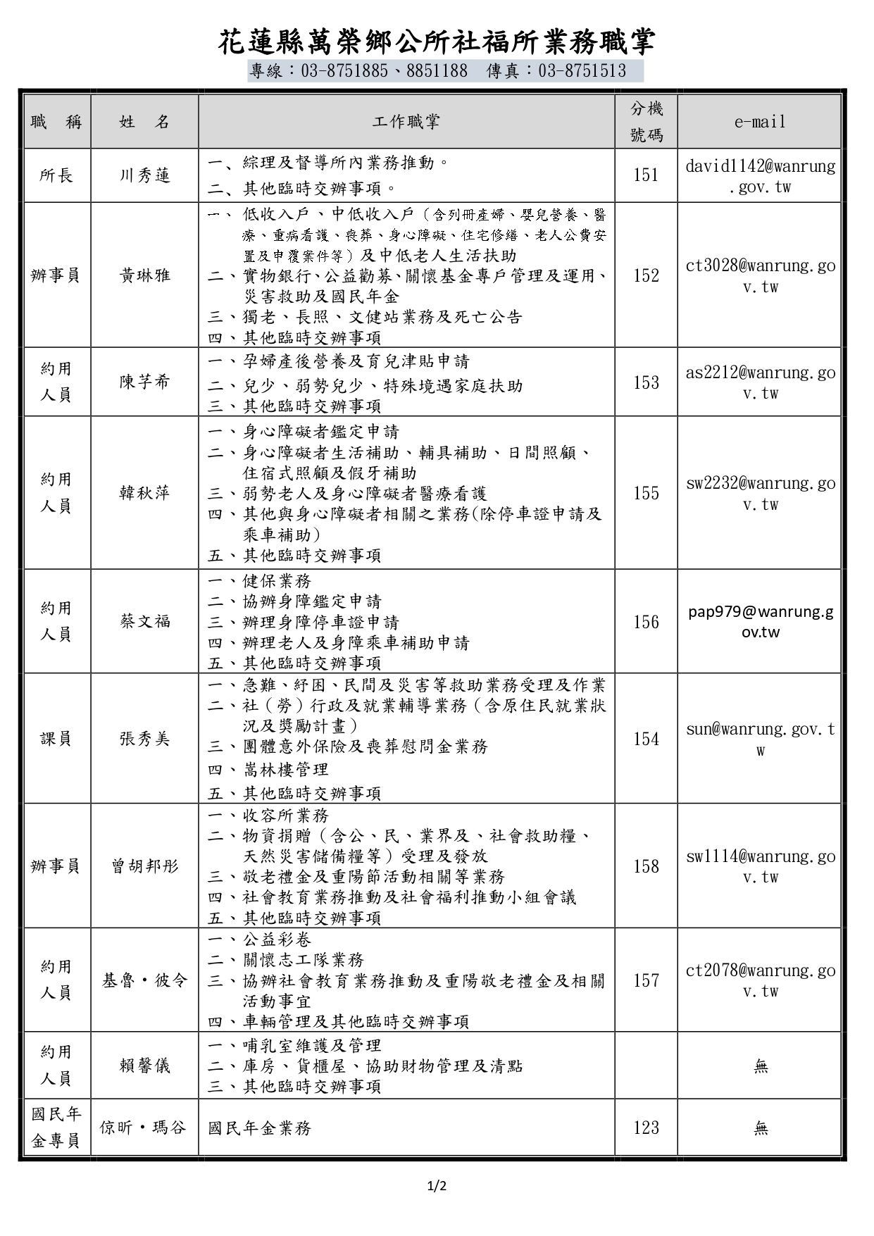 服務窗口及聯絡電話(總機):(03)8751321/傳真:(03) 8752049